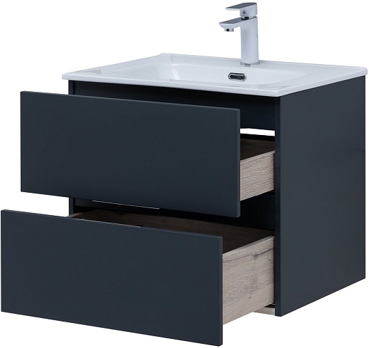 Тумба под раковину Алвита New 60 2 ящика подвесная антрацит матовая