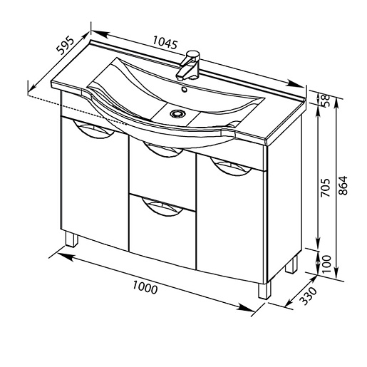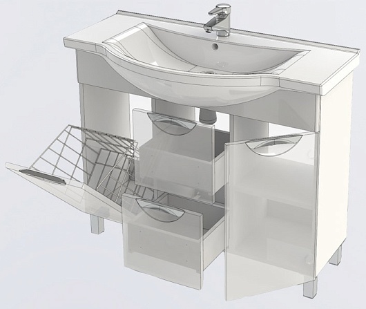 - Тумба под раковину Асти 105: 1 распашная дверца, 2 выдвижных ящика, бельевая корзина