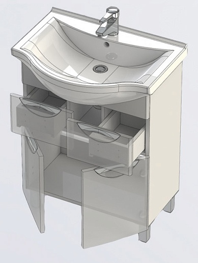 - 177769 тумба под раковину Асти 65 белая: две распашные дверцы, два выдвижных ящика