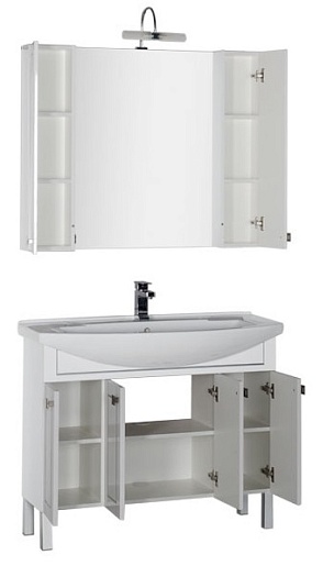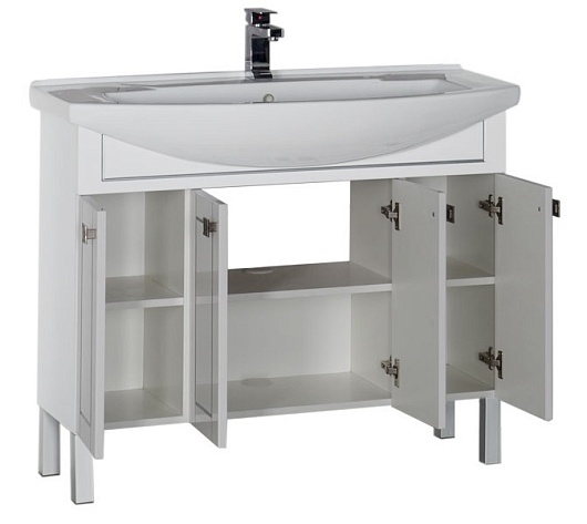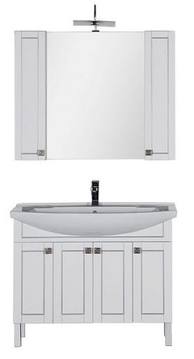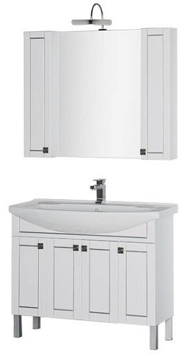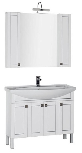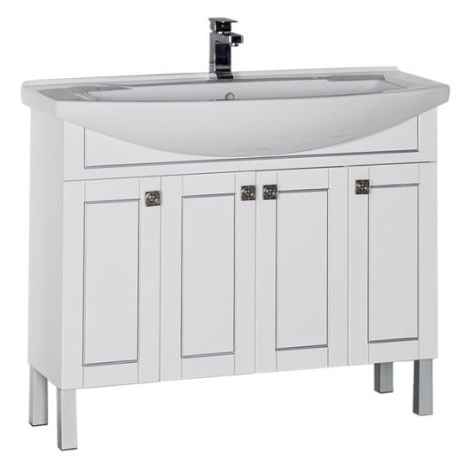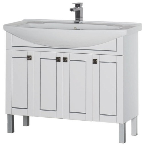 - Тумба: Aquanet Честер 105, цвет белый/патина серебро, 4 распашные дверцы (182630)