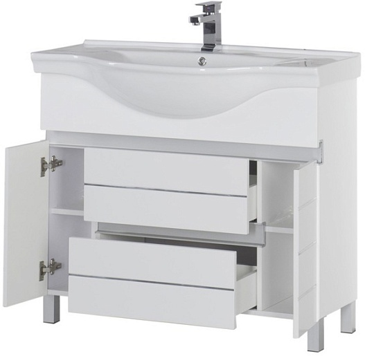 - тумба под раковину Aquanet Доминика 100 белая: дверца распашная - 1 шт., ящик выдвижной - 2 шт.
