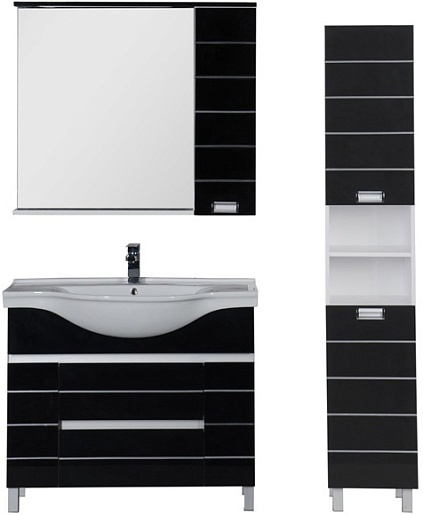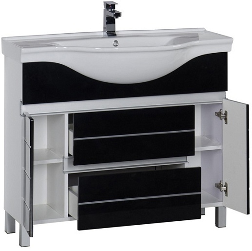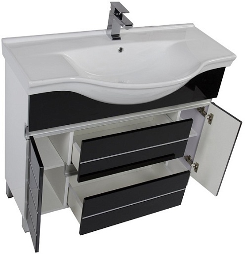 - тумба под раковину Aquanet Доминика 100 черная: дверца распашная - 1 шт., ящик выдвижной - 2 шт.