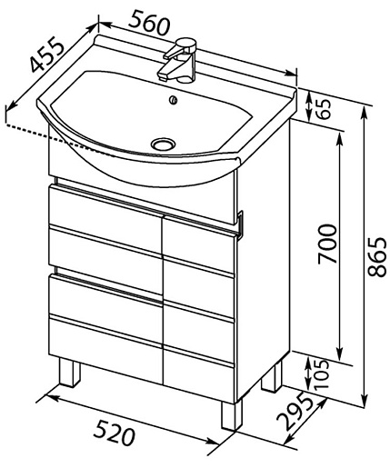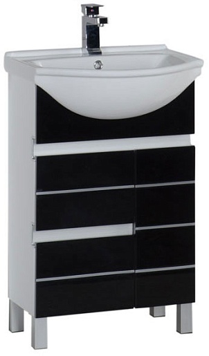 - тумба под раковину Aquanet Доминика 55 черная: дверца распашная - 1 шт., ящик выдвижной - 2 шт.