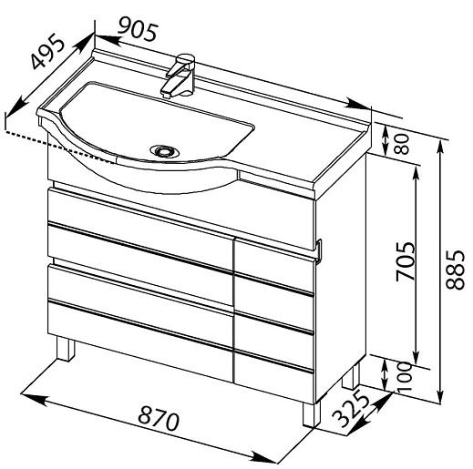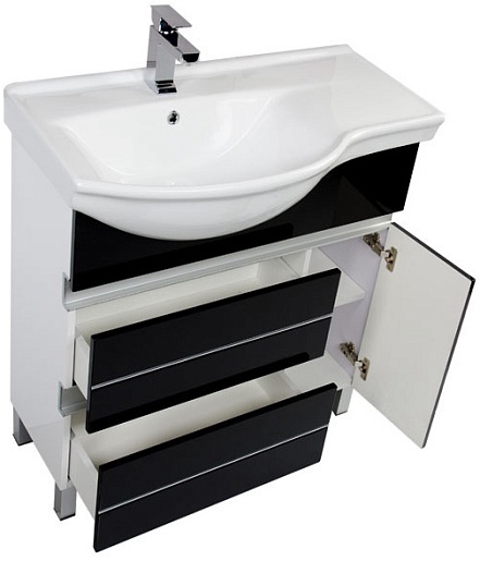 - тумба под раковину Aquanet Доминика 90 L черная: дверца распашная - 1 шт., ящик выдвижной - 2 шт.