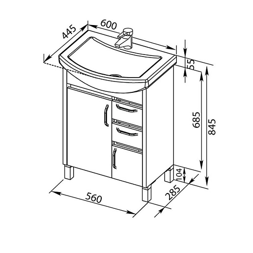 Тумба с раковиной «Донна 60» — арт. 00176071