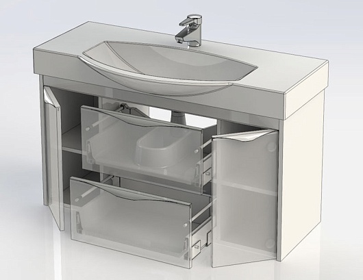 - 183056 Тумба под раковину "Франка 105" подвесная: два выдвижных ящика, две распашные двери, метабоксы