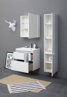 - Тумба: Aquanet Гласс 60, цвет белый, ящики цвета Дуб сонома, 2 выдвижных ящика (196961)