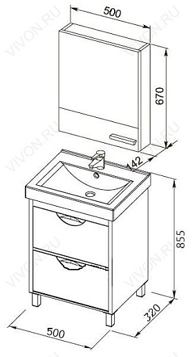 - 00171587 тумба под раковину Aquanet Гретта 50 венге: ящик выдвижной - 2 шт., ручка - 2 шт