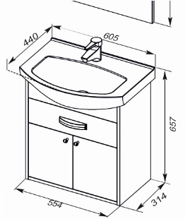 - тумба под раковину Грейс 60 арт. 00198373 с двумя распашными дверцами и ящиком