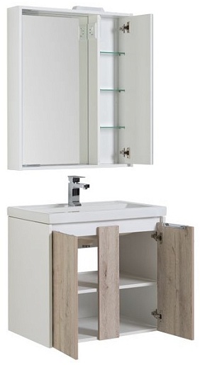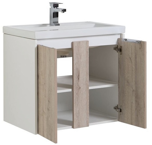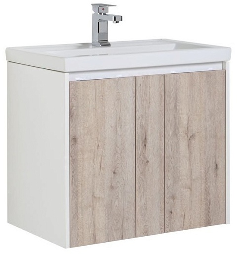 Тумба: Aquanet Клио 70, цвет дуб кантри/белый, 2 распашных дверцы (195721)