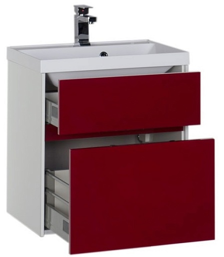 - Тумба: Aquanet Латина 60, цвет белый (фасад бордо), 2 выдвижных ящика (179938)
