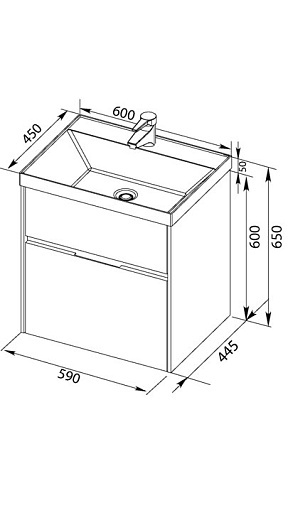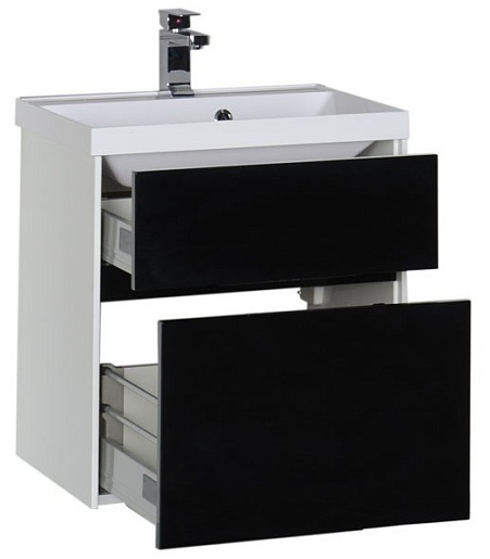 - Тумба: Aquanet Латина 60, цвет белый (фасад черный), 2 выдвижных ящика (179937)