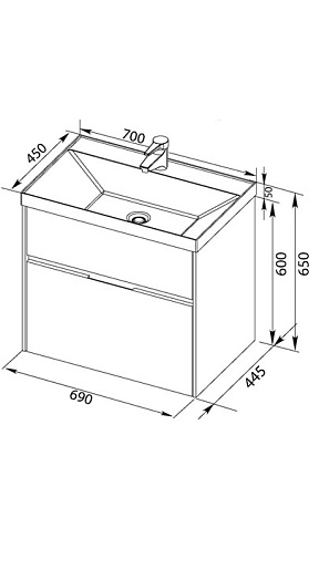 - Тумба: Aquanet 70, цвет белый (фасад черный), 2 выдвижных ящика (180033)
