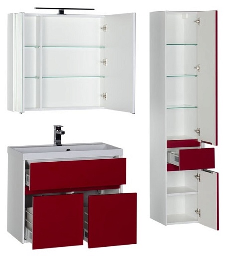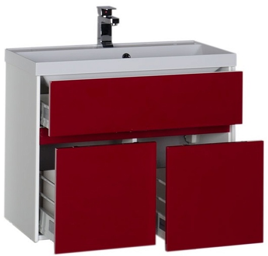 - Тумба: Aquanet Латина 80, цвет белый (фасад бордо), 3 выдвижных ящика (179930)