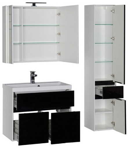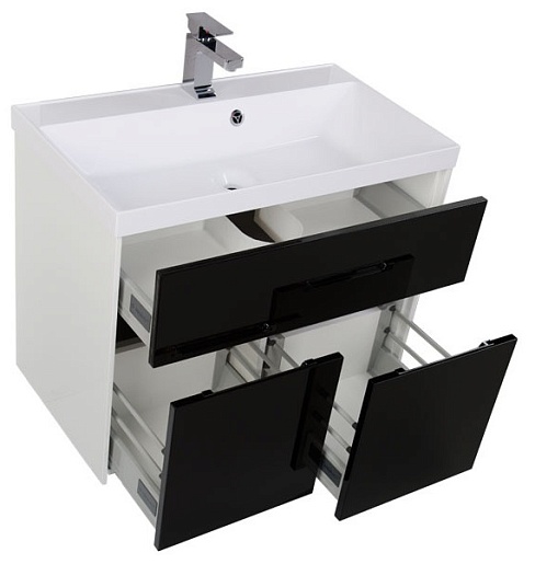 - Тумба: Aquanet Латина 80, цвет белый (фасад черный), 3 выдвижных ящика (179929)
