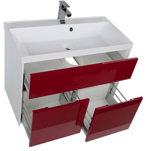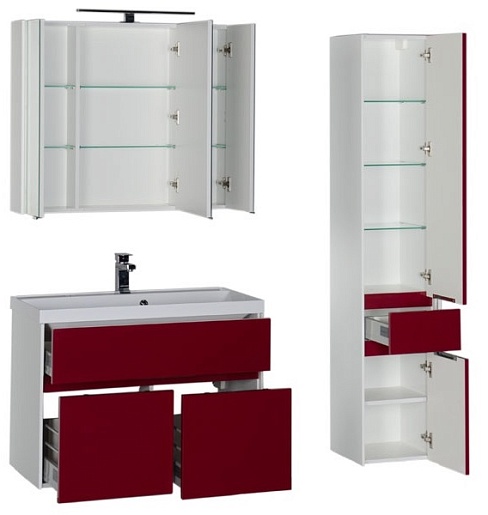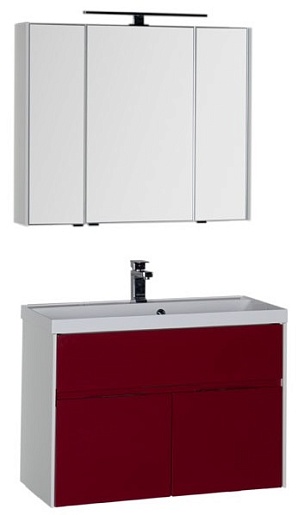 - Тумба: Aquanet Латина 90, цвет белый (фасад бордо), 3 выдвижных ящика (179932)