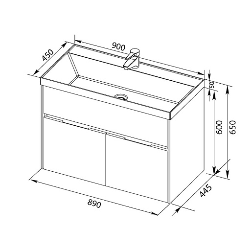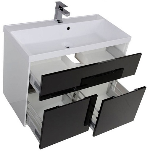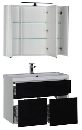 - Тумба: Aquanet Латина 90, цвет белый (фасад черный), 3 выдвижных ящика (179931)
