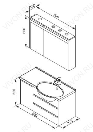 Размеры ШхГхВ: 900х490х525 мм
