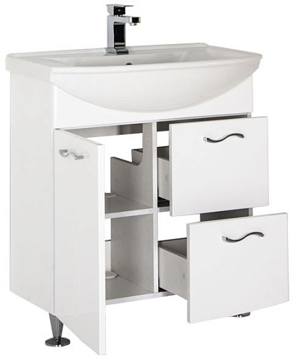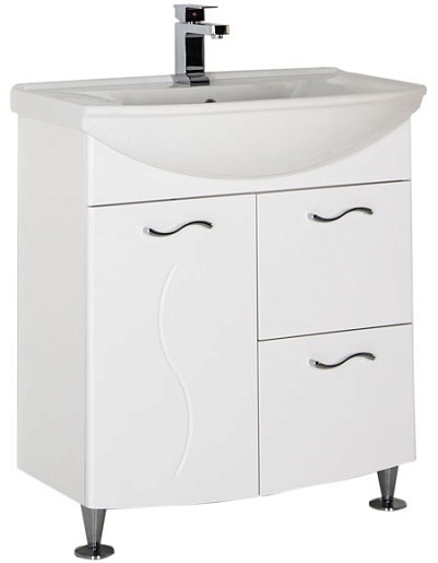 Тумба: Aquanet Моника 75, цвет белый, 1 распашная дверца, 2 выдвижных ящика (186770)
