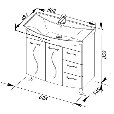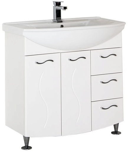 Тумба: Aquanet Моника 85, цвет белый, 2 распашных дверцы, 3 выдвижных ящика (186771) Раковина: Стиль 85 (185346)