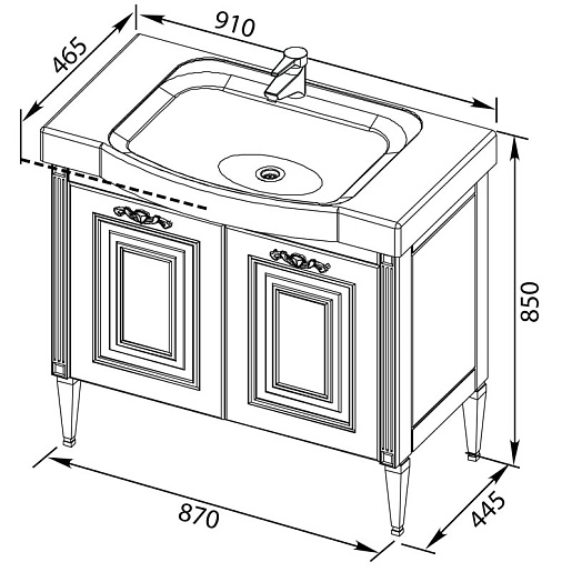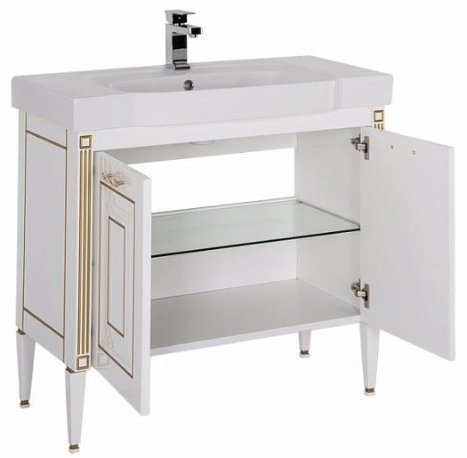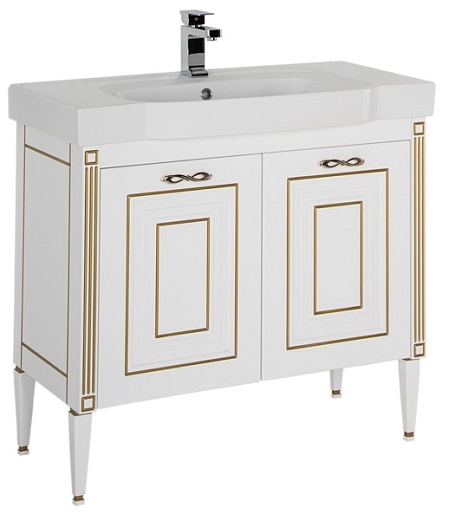 Тумба под раковину Паола 90 (домино) белый/золото