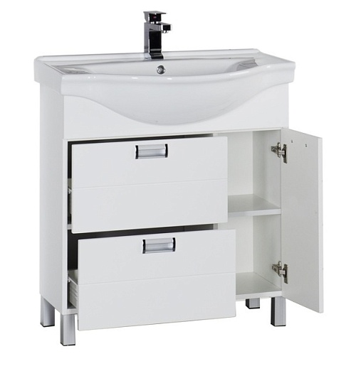 - тумба под раковину Aquanet Сити 80 белая: дверца распашная - 1 шт., ящик выдвижной - 2 шт., ручка - 3 шт.