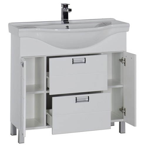 - тумба под раковину Aquanet Сити 90 белая: дверца распашная - 1 шт., ящик выдвижной - 2 шт., ручка - 3 шт.