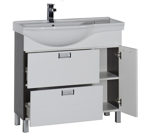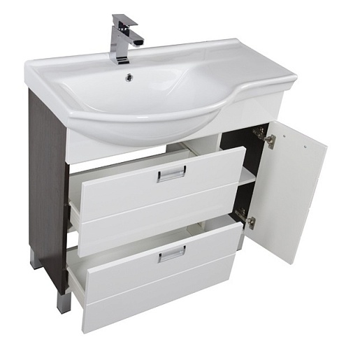 - тумба под раковину Aquanet Сити 90 L венге: дверца распашная - 1 шт., ящик выдвижной - 2 шт., ручка - 3 шт.