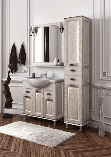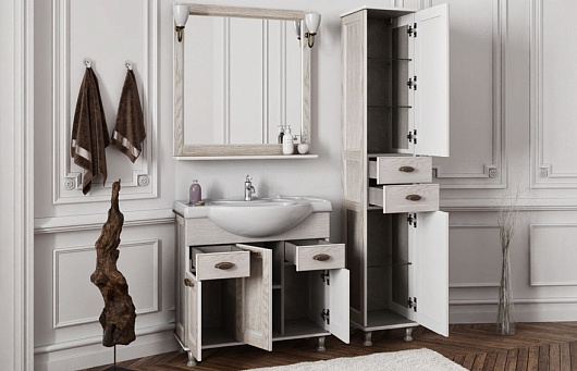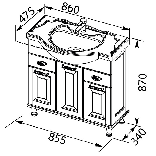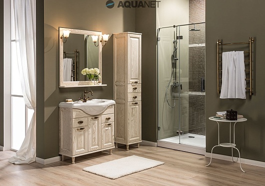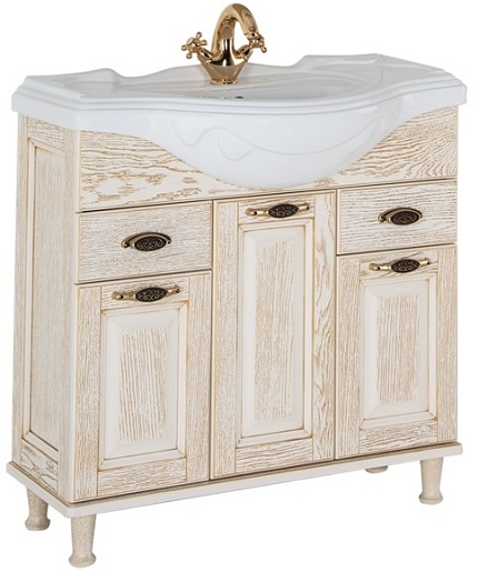 - Тумба: Aquanet Тесса 85, цвет жасмин/золото, 3 распашные дверцы, 2 выдвижных ящика (185804)