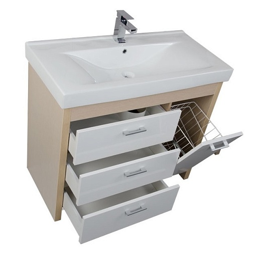 - тумба под раковину Aquanet Тиана 100 светлый дуб: выдвижной ящик - 3 шт., корзина для белья - 1 шт., ручка - 4 шт., откидная дверца - 1 шт.