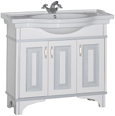 Тумба под раковину Валенса 100 белый кракалет/серебро