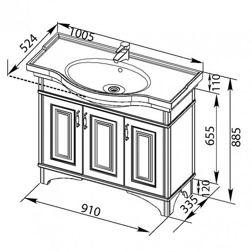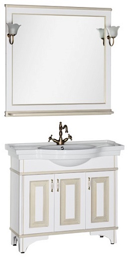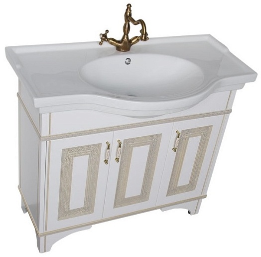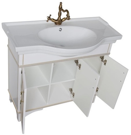- Тумба: Aquanet Валенса 100, цвет белый, кракалет/золото, 3 распашные дверцы (182653)