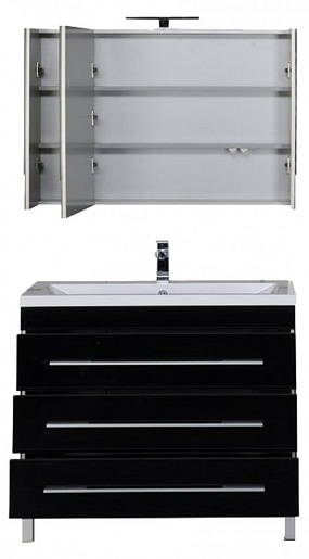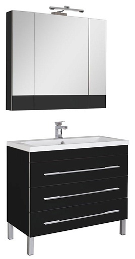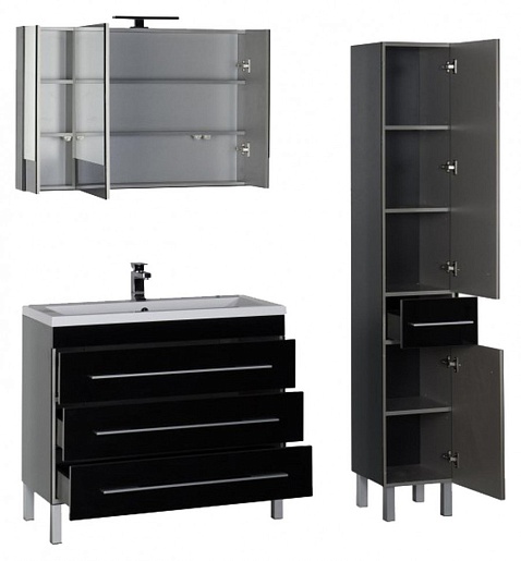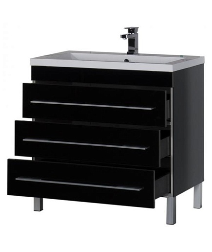 - тумба под раковину Aquanet Верона 100 черная: акриловая кромка, выдвижной ящик - 3 шт., ручка (хром) - 3 шт.