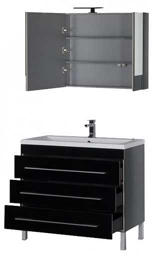Aquanet Тумба с раковиной Верона 100 напольная, ящики, черная