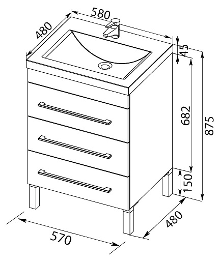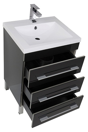 - тумба под раковину Aquanet Верона 58 черная: акриловая кромка, выдвижной ящик - 3 шт., ручка (хром) - 3 шт.