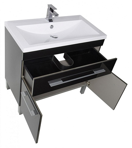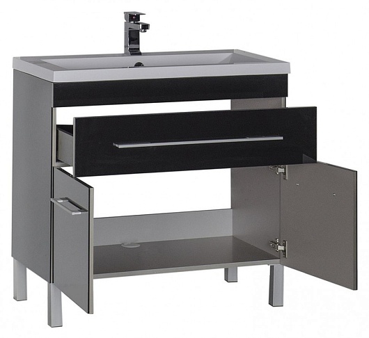Aquanet Тумба с раковиной Верона 90 напольная, дверцы, черная
