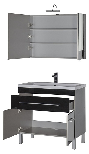 - тумба под раковину Aquanet Верона 90 черная: акриловая кромка, выдвижной ящик - 1 шт., дверцы - 2 шт., ручка (хром) - 3 шт.