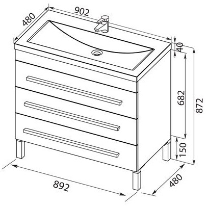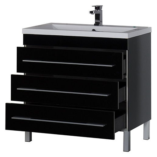 - тумба под раковину Aquanet Верона 90 черная: акриловая кромка, выдвижной ящик - 3 шт., ручка (хром) - 3 шт.