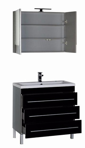 Aquanet Тумба с раковиной "Верона 90" напольная, ящики, черная