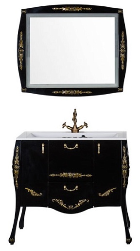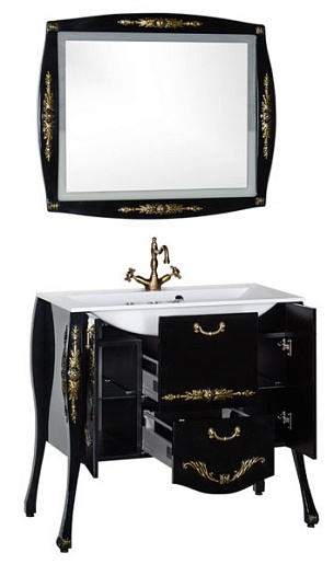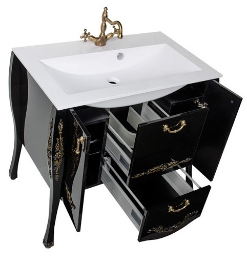 - Тумба: Aquanet Виктория 90, цвет черный глянец/золото, 2 распашные дверцы, 2 выдвижных ящика (183932)