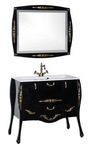 Aquanet Тумба с раковиной "Виктория 90" черный/золото