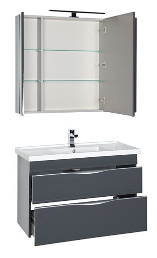 Aquanet Зеркальный шкаф "Эвора 100" серый антрацит