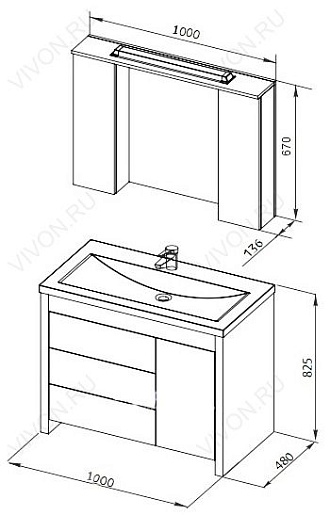 Размеры ШхГхВ: 1000х136х670 мм