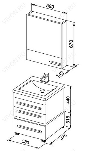 Размеры ШхГхВ: 580х142х670 мм