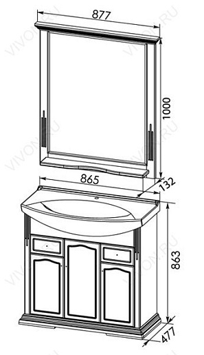 Размеры ШхГхВ: 877х132х1000 мм