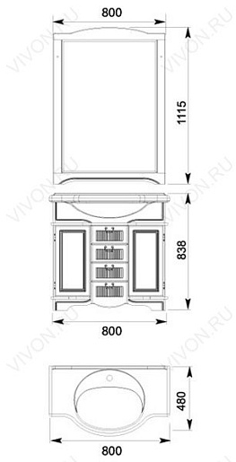 Aquanet Зеркало для ванной "Луис 80" бежевое (173216)