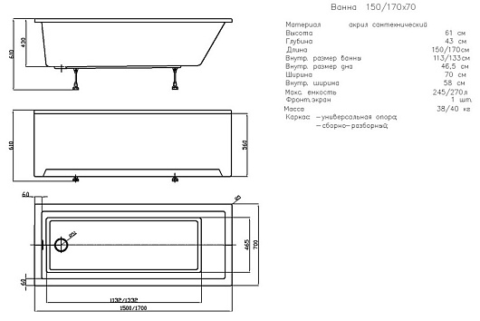 Акриловая ванна Aquatek София 170x70 - арт. SOF170-0000001.