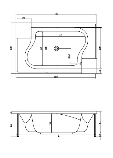 - Гидромассаж (пневматическое управление, 8 форсунок)