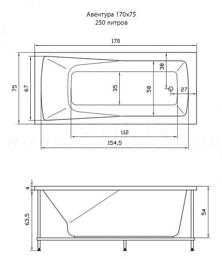 Aquatika Акриловая ванна H2O Авентура Sensa 170x75 cм