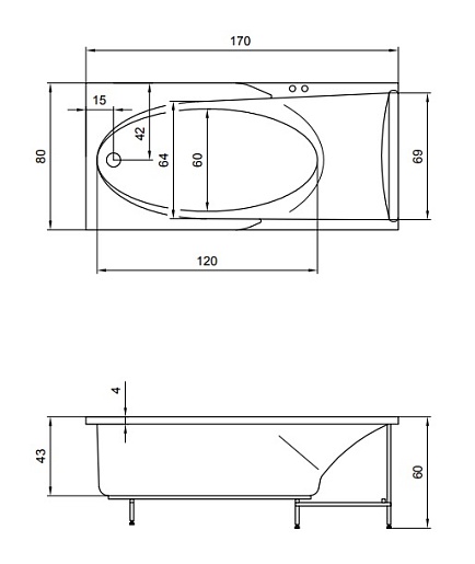 Aquatika Акриловая ванна H2O Кинетика Basic